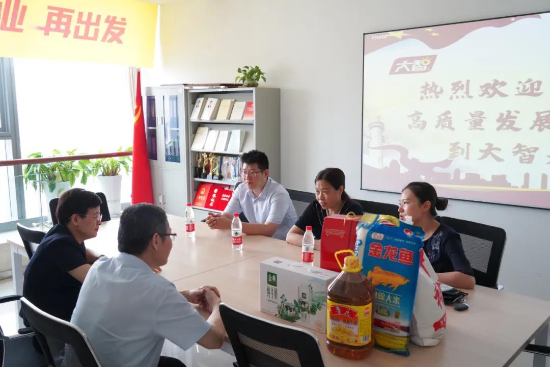 7月1日,濟(jì)南市民營企業(yè)高質(zhì)量發(fā)展服務(wù)隊(duì)到大智慰問光榮在崗老黨員。大智教育集團(tuán)黨委書記王現(xiàn)芹熱情接待。