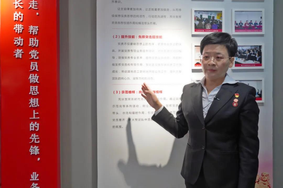 王現芹帶領大家參觀了黨建長廊,詳細介紹了大智組織架構、企業文化等相關情況,以及“智惠黨建一三九”黨建工作模式,黨建引領下的“一帶一促”群團建設理念和“智惠+”群團建設模式,大家對大智的黨建工作給予了充分肯定和高度認可。