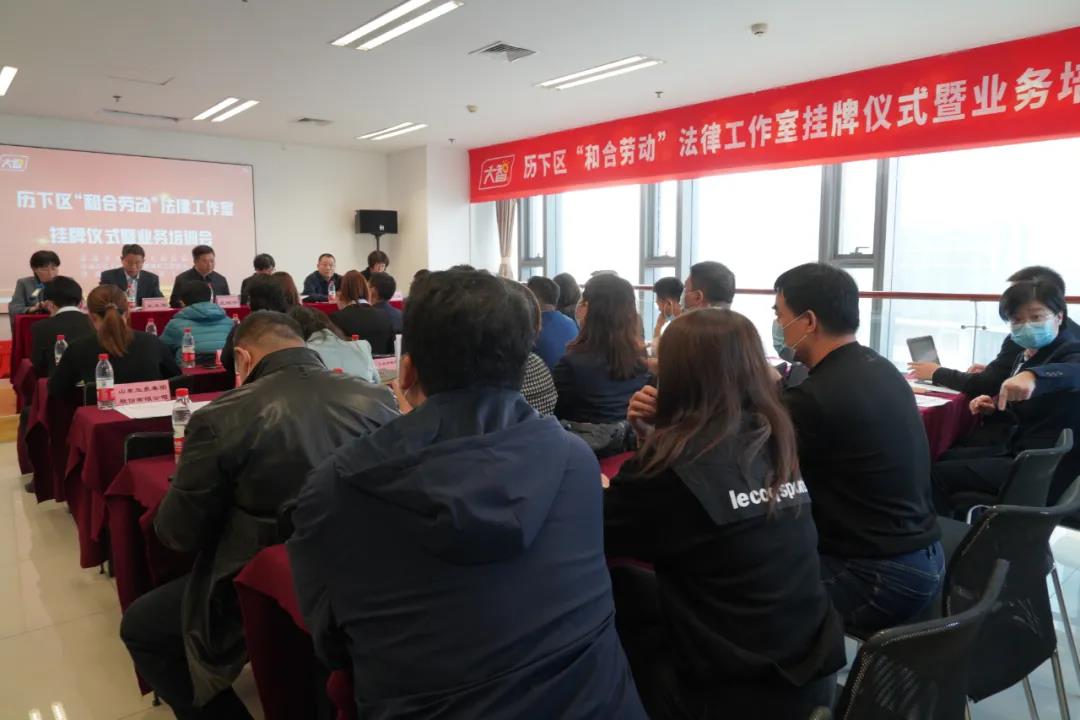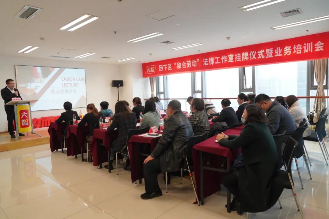 11月16日下午,濟南市歷下區(qū)人社局、歷下區(qū)人民法院、歷下區(qū)總工會相聚在大智教育集團總部會議室,召開歷下區(qū)第二批“和合勞動”法律工作室掛牌儀式暨業(yè)務培訓會議,通過掛牌儀式和業(yè)務培訓兩大階段,企業(yè)家們切身感受到了“和合勞動”帶來的營商環(huán)境便利度,感受到了濃濃的幸福感與安全感,大家臉上都洋溢著燦爛的笑容。