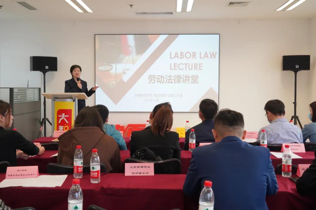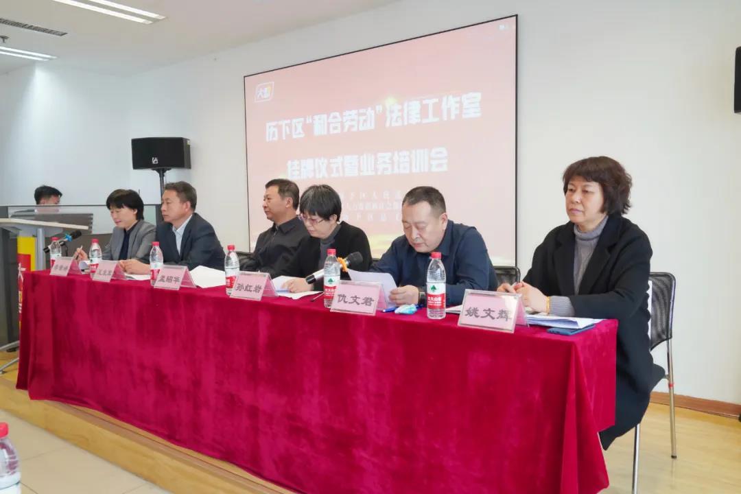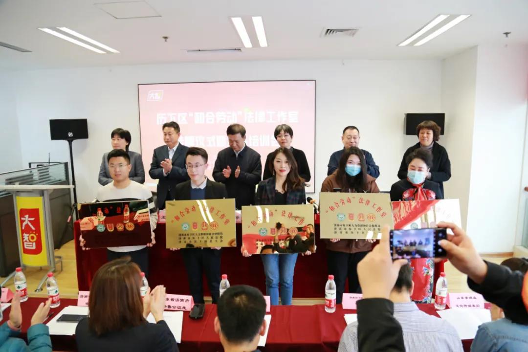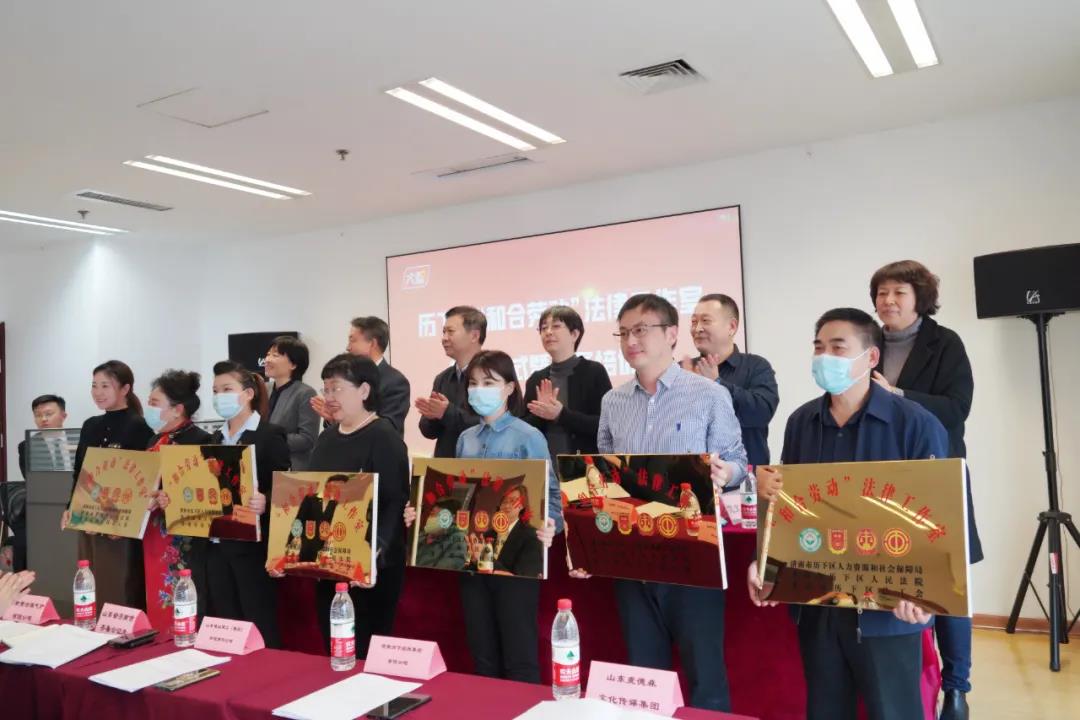 歷下區(qū)“和合勞動”法律工作室掛牌儀式由歷下區(qū)委組織部副部長,區(qū)人社局黨組書記、局長李素婷同志主持。濟南市人社局黨組成員、副局級領(lǐng)導干部孟昭華,濟南市總工會一級調(diào)研員常江,濟南市中級人民法院民一庭庭長孫紅巖,濟南市人社局勞動關(guān)系處處長王發(fā)軍,歷下區(qū)總工會黨組書記、常務副主席仇文君,歷下區(qū)人民法院副院長姚文輝出席。