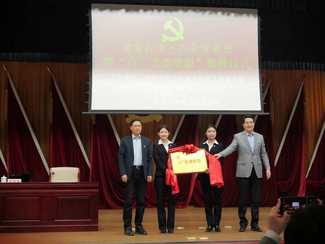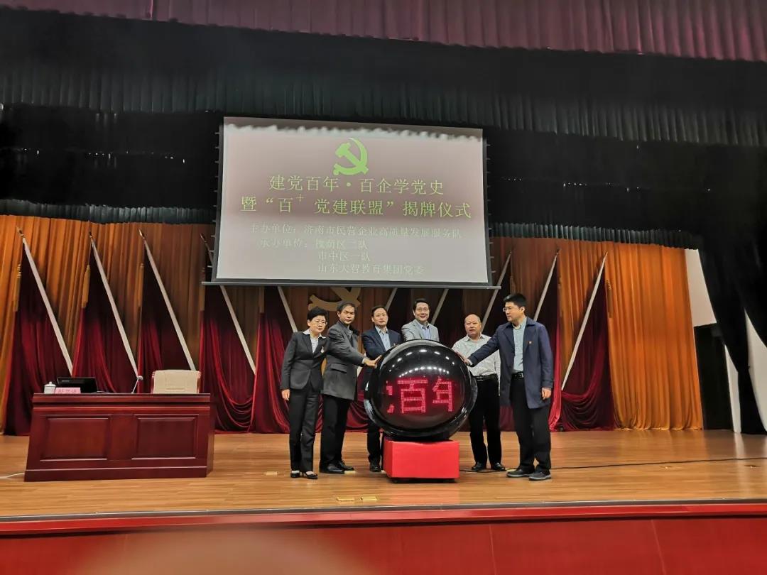 為切實(shí)加強(qiáng)和改進(jìn)民營(yíng)企業(yè)黨建工作,為民營(yíng)企業(yè)發(fā)展壯大提供堅(jiān)強(qiáng)的政治堡壘,3月23日上午,由濟(jì)南市民營(yíng)企業(yè)高質(zhì)量發(fā)展服務(wù)隊(duì)主辦,濟(jì)南市民營(yíng)企業(yè)高質(zhì)量發(fā)展服務(wù)隊(duì)槐蔭區(qū)二隊(duì)、濟(jì)南市民營(yíng)企業(yè)高質(zhì)量發(fā)展服務(wù)隊(duì)市中區(qū)一隊(duì)、山東大智教育集團(tuán)黨委承辦的學(xué)黨史、悟思想、辦實(shí)事、開新局暨“百+黨建”聯(lián)盟揭牌儀式在槐蔭區(qū)政務(wù)中心舉行。