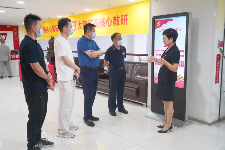 08月13日,濟南市千佛山街道辦事處黨建辦公室副主任趙孔希帶領轄區企業海大醫院的代表走進大智。大智控股集團黨委書記王現芹帶領大家參觀了大智黨...