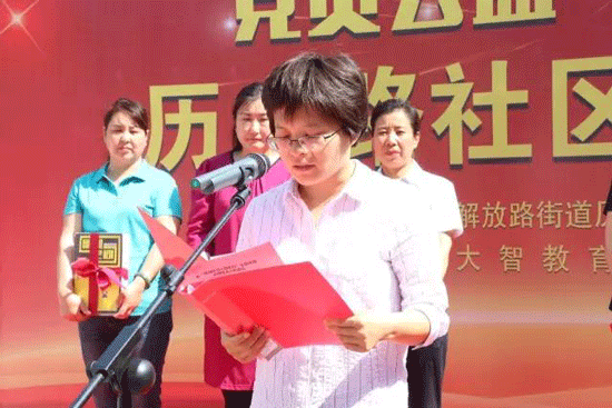 緊接著,王現芹現場做表態發言,她表示:大智控股集團將發揮教育資源優勢,在解放路街道的社區內持續開展“家長學校”、 “百名學子免費助學計劃”、“‘愛心傳遞,知識傳承’公益贈書”等一系列公益活動。