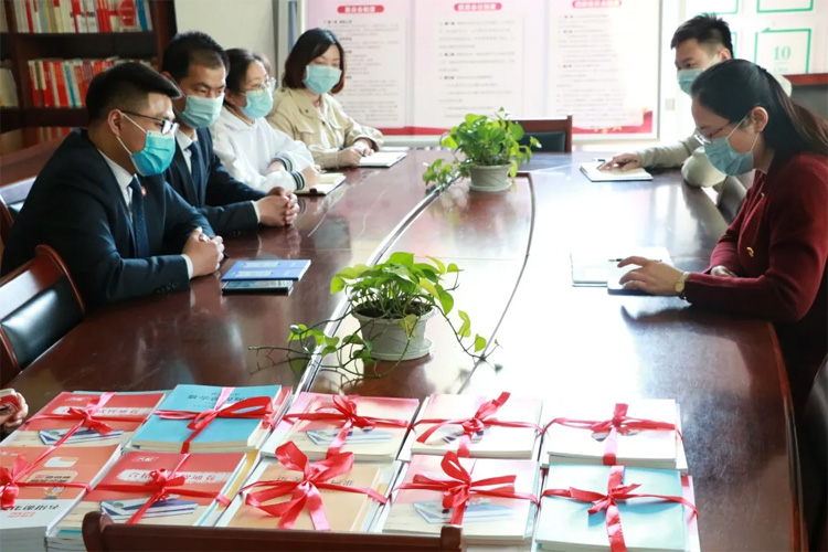 贈書儀式上,大智臨沂區域團總支書記于雙青代表臨沂區域向沂州社區捐贈大智公開課、大智教研書籍50余套以及各類學習資料 。