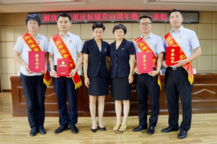 06月25日,濟(jì)南市歷下區(qū)解放路街道召開(kāi)慶祝建黨98周年暨七一表彰大會(huì),會(huì)上,大智控股集團(tuán)小班項(xiàng)目黨支部、講師第二黨支部獲得“先進(jìn)基層黨組織”榮譽(yù),大智控股集團(tuán)1對(duì)1項(xiàng)目黨支部書(shū)記盧濟(jì)南獲得“優(yōu)秀共產(chǎn)黨員”榮譽(yù),大智控股集團(tuán)黨委委員常廣成獲得“優(yōu)秀黨務(wù)工作者”榮譽(yù)。