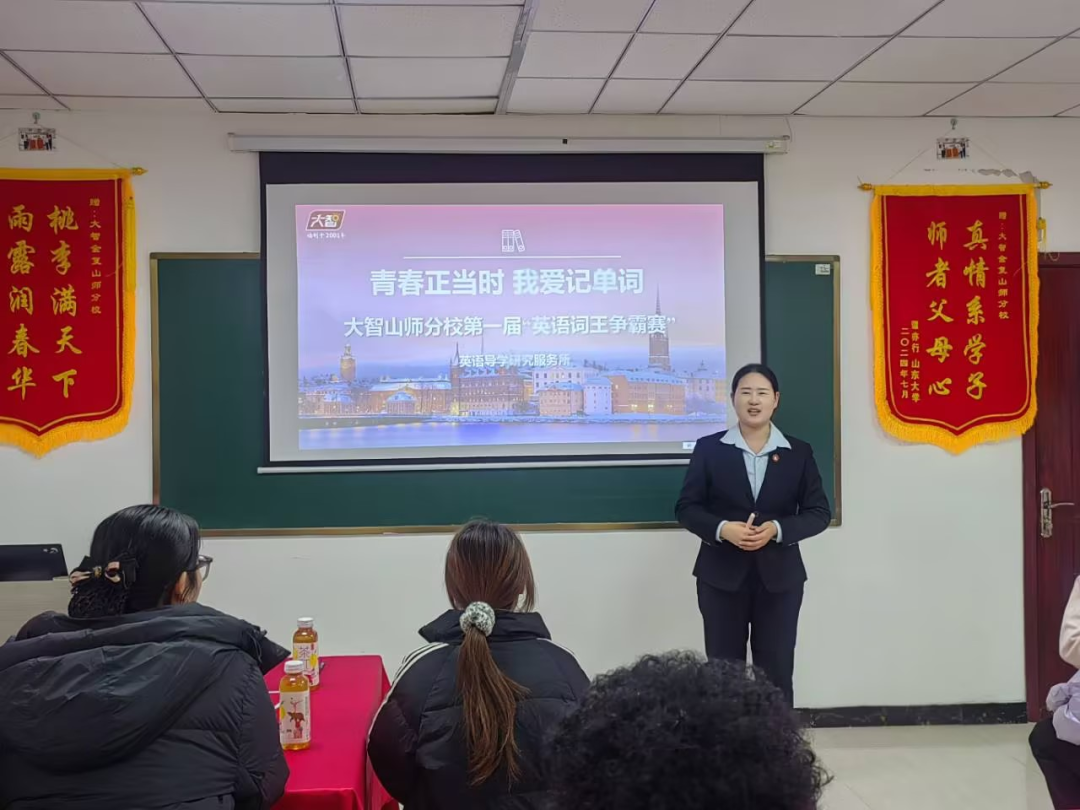 新時代背景下,學生需要成為德智體美勞全面發展的人才。英語學科中詞匯的學習是基石,不能通過死記硬背的方式學習,需要通過科學的方法智慧地學習,為訓練學生學會用科學的方法記憶詞匯,正確運用詞匯表達自我觀點并且找到學習英語的本質樂趣,強化以知識為基,能力為重,素養導向,價值引領,大智山師分校聯合英語導學研究服務所于1月4日成功舉辦以“青春正當時,我愛記單詞”為主題的大智第一屆“詞王爭霸賽”。