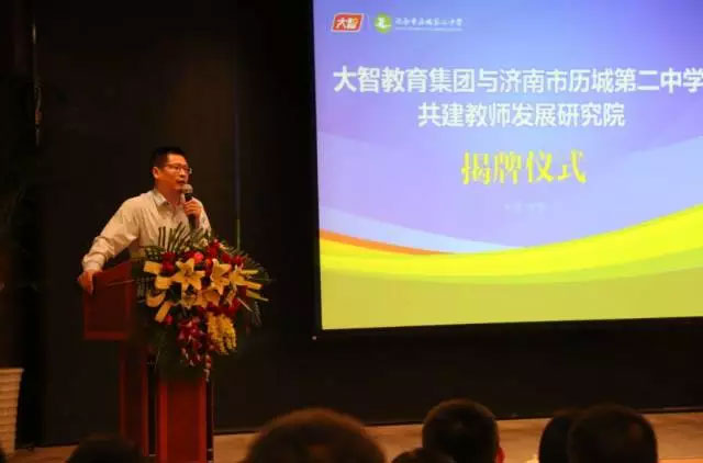 張維東在揭牌儀式上表示,“教師發展研究院”的成立意味著大智教育集團與山東省基礎教育的窗口學校、重點學校歷城二中在探索教師培養方面邁出了重要的一步。作為一所民辦教育機構,大智要想與歷城二中這樣的名校合作的更加長久,需要大智不斷提高自身素質和實力。可喜的是自成立以來大智在教育教學方面做了大量的工作,尤其是今年,大智在講師培訓方面邁出了重要的一步,成立了大智教師發展研究院,為大智的講師培養插上了騰飛的翅膀,為大智未來的成長提供了更多的幫助,為踐行大智做“公辦學校的助手,家庭教育的幫手,素質教育的推手”提供了保障。張維東現場對所有大智講師提出更高要求,要求大大家苦練內功,提高自身素質,為學生提供更優質的教學服務。張維東表示大智期待能夠在師訓方面,為教育培訓機構探索出一條新路子,為民辦教育可持續發展做出自己的貢獻。
