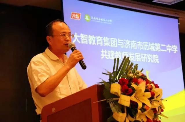 9月30日,民辦教育培訓機構大智與濟南市歷城第二中學在山東新聞大廈舉辦“聯合共建教師發展研究院”揭牌儀式。儀式上,濟南市教育局成人教育處處長于春祥與濟南市歷城第二中學校長李新生共同為教師發展研究院揭牌,并現場接受了媒體采訪。至此,由大智和歷城二中聯合創建的“教師發展研究院”正式成立了。
