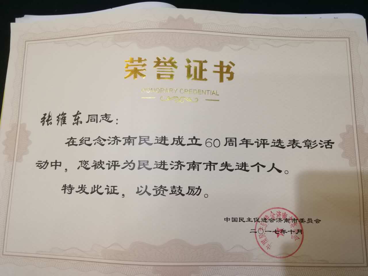 10月16日,喜迎十九大·慶祝中國民主促進會濟南市委員會成立60周年大會在濟南隆重舉行。會上,在紀念濟南民進成立60周年評選表彰活動中,大智控股集團創始人、董事長張維東被評為“民進濟南市先進個人”。