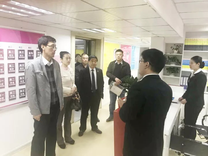 來震一行參觀了大智教育集團青島區域運營部和青島區域市南家樂福VIP分校,張維東就大智近年來的發展狀況和未來發展做了詳細匯報。張維東表示,為了給廣大學生更好的教育教學服務,大智近年來下大力氣發展教研和師訓,并取得一系列教育教學成果。在講師培養上,大智開展了育英計劃、菁英計劃和萃英計劃,使得大智講師能夠持續成長,不斷進步。
