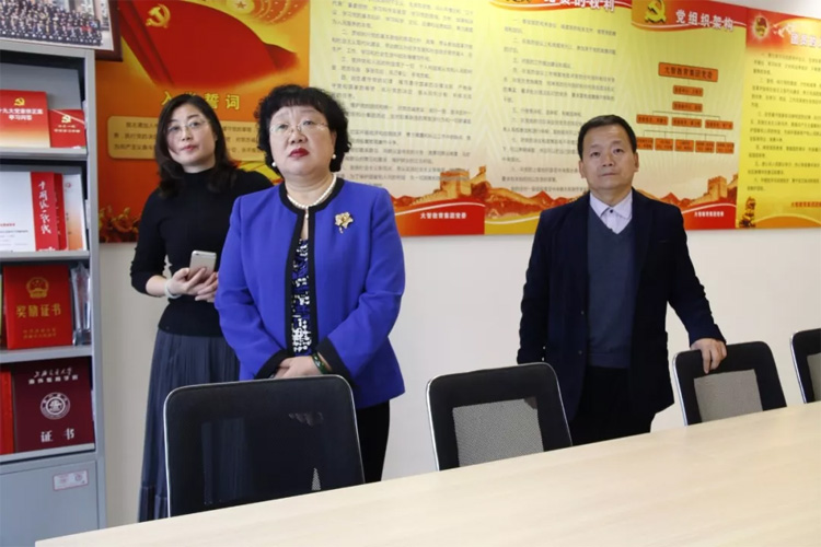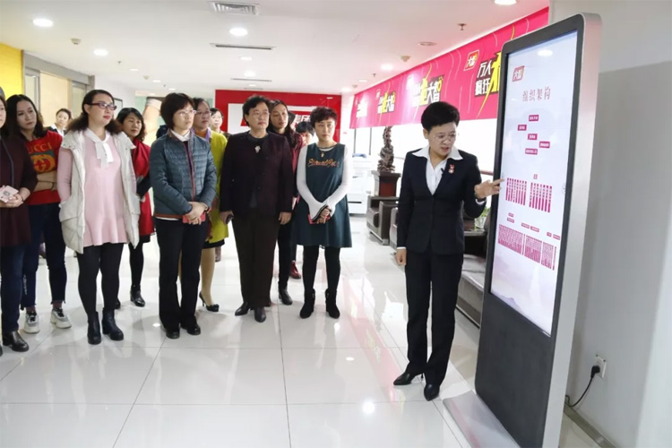 王現芹首先從整體上向大家介紹了大智 “執行、誠信、關愛”的企業文化和組織架構。并帶領大家參觀了大智控股集團黨群陣地。詳細向領導們介紹了大智“智惠黨建一三九”工作模式、所開展的黨建系列活動。以黨建為引領,大智形成了“一帶一促”群團建設理念,打造了獨具特色的智惠工會、智惠團建、智惠婦建和智惠統戰,黨群建設工作取得實效成果。