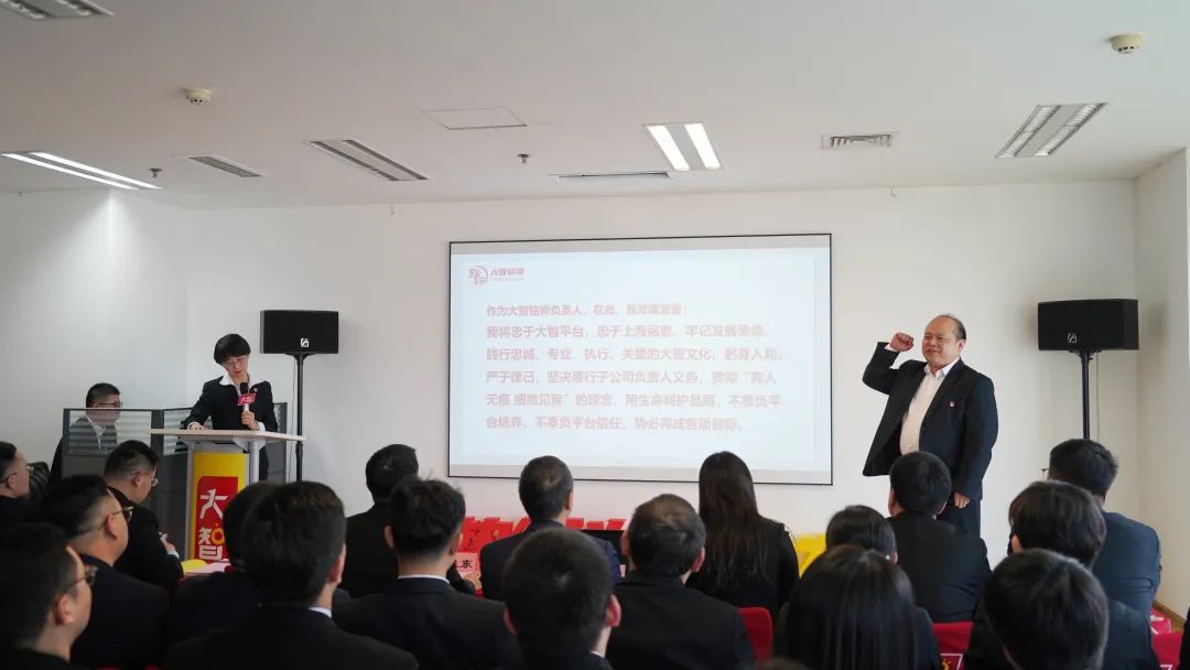 山東大智控股集團執(zhí)行總裁、大智銘師教育咨詢服務(wù)(山東)有限公司董事長兼總經(jīng)理張朋進行就職宣誓,并做出鄭重承諾。