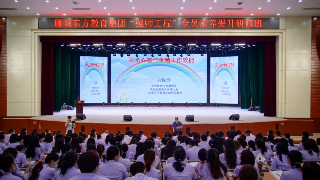 7月11日,聊城市東方教育集團(tuán)“強(qiáng)師工程”之全員素養(yǎng)提升研修班開班典禮在聊城東方教育集團(tuán)報(bào)告廳舉行。聊城市東方教育集團(tuán)董事長趙以濤,聊城東方教育集團(tuán)副董事長、行政校長馬成虎,聊城東方教育集團(tuán)副董事長、業(yè)務(wù)校長、東方中學(xué)校長、集團(tuán)教研室主任王曉虎,聊城東方教育集團(tuán)副董事長、辦公室主任付博,聊城東方教育集團(tuán)副董事長、人力資源部主任、黨建辦公室主任劉佳,山東大學(xué)文學(xué)與新聞傳播學(xué)院教授、博士生導(dǎo)師、中國最勵(lì)志教授劉悅坦,大智銘師負(fù)責(zé)人張朋,大智銘師項(xiàng)目部負(fù)責(zé)人徐西路等出席開班典禮,大智銘師教學(xué)部黃遠(yuǎn)福主持典禮。