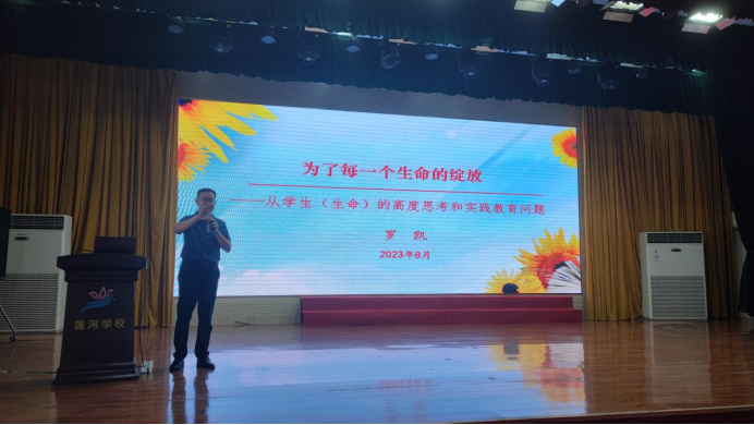 為高起點啟動新學期教育教學工作,統一全體教師干事創業的思想,堅定高質量發展的信念,2023年8月29日,在前期充分調研的基礎上,由大智銘師承辦的“濟南市萊蕪區蓮河學校教研共同體新學期教師培訓”在蓮河學校報告廳正式啟動!