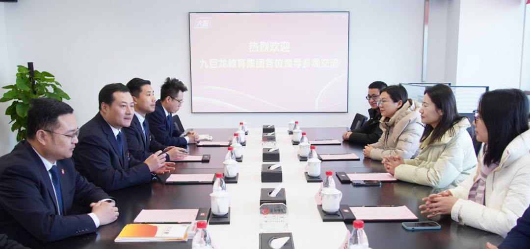 12月23日,九巨龍教育集團總經理徐衍瑛一行到大智控股集團總部參觀交流。大智控股集團副總裁、大智金復總校長蘇好帥熱情接待。