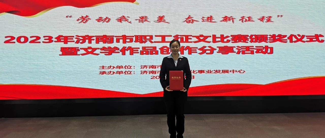 11月7日,“勞動我最美奮進新征程”2023年濟南市職工征文比賽頒獎儀式在全省工會融媒體中心舉辦。 現場,為獲得優秀組織獎的系統工會代表...