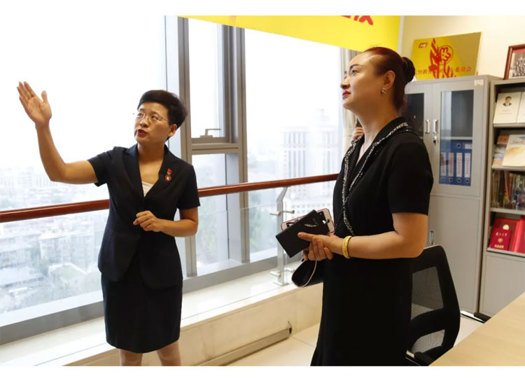 王現芹帶領大家參觀了大智控股集團總部,向大家闡釋了大智“智惠黨建”系統、“一三九”黨建工作模式和大智“一帶一促”群團建設模式。