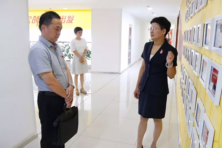 考察中,王現芹帶領大家參觀了大智控股集團黨建陣地,詳細介紹了大智“智惠黨建一三九”工作模式、所開展的黨建系列活動和黨建引領下的群團工作。