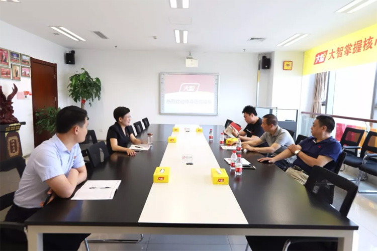 06月04日,濟南市個私協會主任呂安龍一行在濟南市歷下區個私協會主任康勇的陪同下蒞臨大智參觀交流黨建工作。大智控股集團黨委書記王現芹、黨委委員常廣成熱情接待。