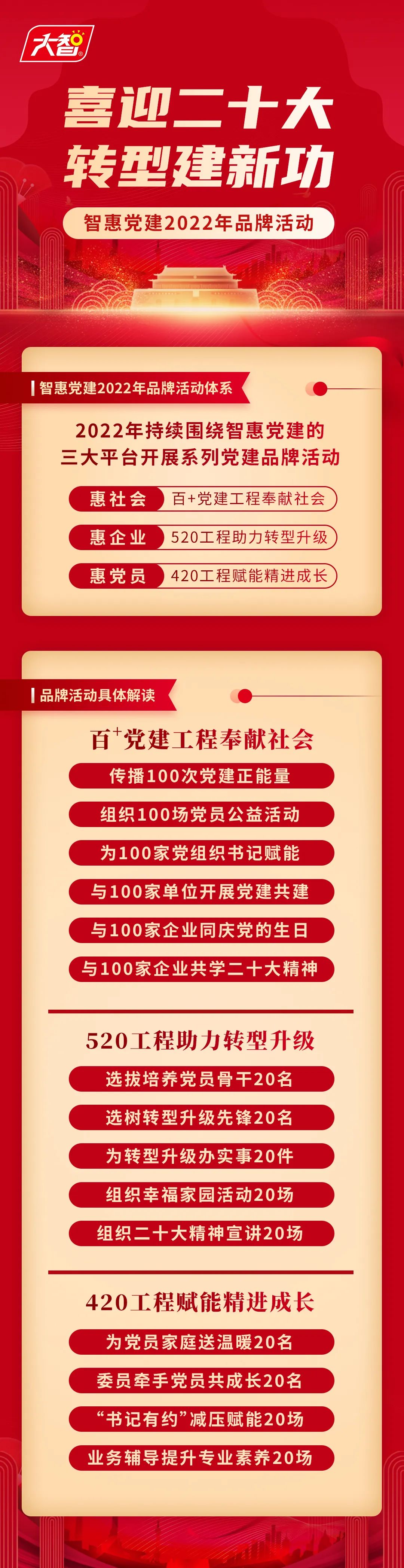 喜迎二十大,轉型建新功。大智控股集團黨委將扛起政治責任,強化使命擔當,以百倍的干勁,更實效的黨建品牌活動,為大智轉型升級做出應有的貢獻,以更加優異的成績迎接黨的二十大勝利召開。