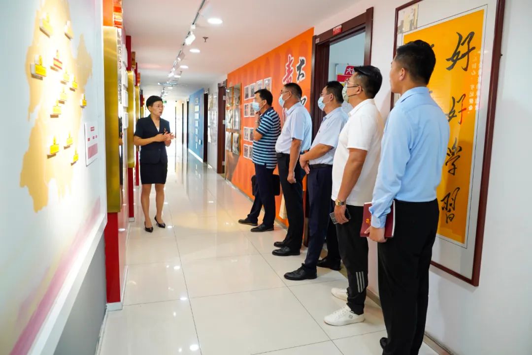 王現芹帶領大家參觀了黨建長廊,詳細介紹了大智組織架構、企業文化等相關情況,以及“智惠黨建一三九”黨建工作模式,黨建引領下的“一帶一促”群團建設理念和“智惠+”群團建設模式。大家對大智的黨建工作給予了高度評價。