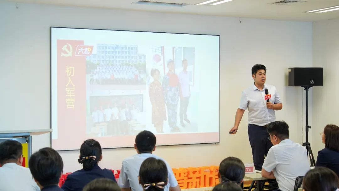 大智金復(fù)人力資源部金岞璋家人作為退伍軍人為大家分享了《青春心向黨 奮斗正當(dāng)時》從人民子弟兵到大智子弟兵的故事。他表示,軍旅生涯錘煉了他能打仗、打勝仗的本領(lǐng)和能吃苦敢吃苦的堅毅品格,在大智平臺上,將繼續(xù)把人民軍隊的優(yōu)良傳統(tǒng)踐行到工作崗位上,持續(xù)提高個人素養(yǎng)、職業(yè)素養(yǎng)、專業(yè)素養(yǎng),創(chuàng)造性開展工作,為建設(shè)百年大智貢獻(xiàn)力量。