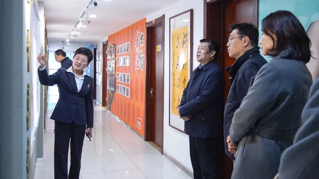 王現芹帶領大家參觀了黨建長廊,詳細介紹了大智黨委組織架構、企業文化等相關情況,以及“智惠黨建一三九”黨建工作模式,黨建引領下的“一帶一促”群團建設理念和“智惠+”群團建設模式。大家對大智的黨建工作給予了高度評價。