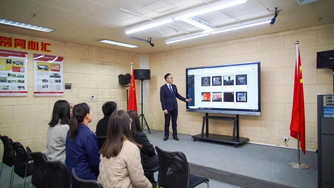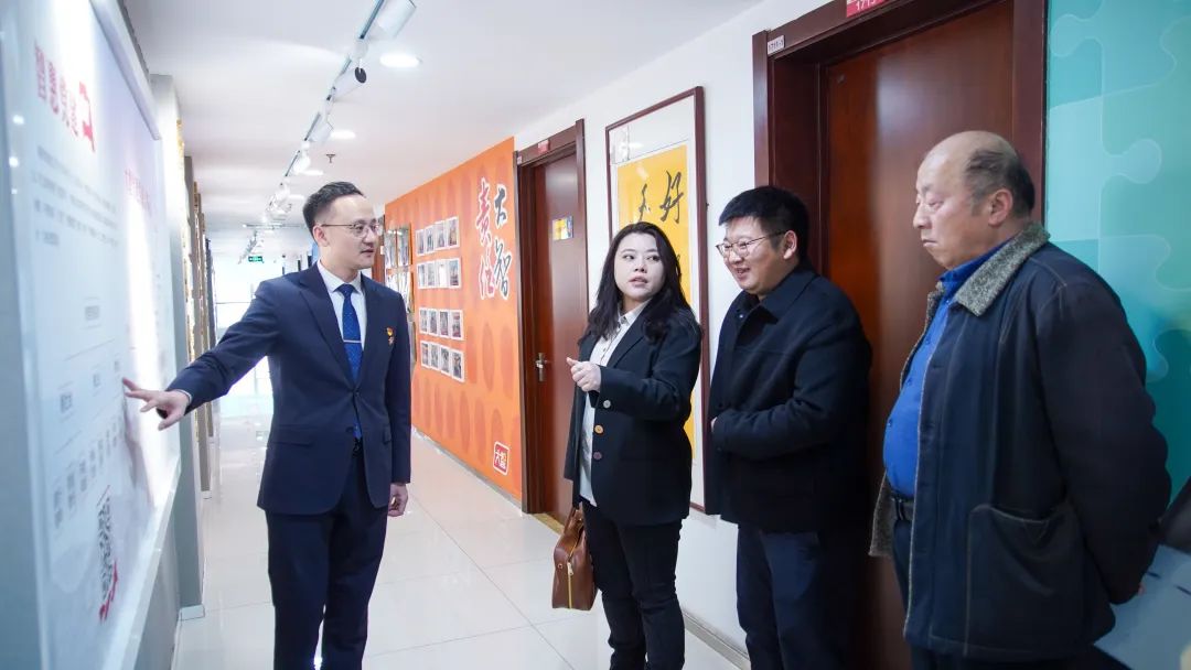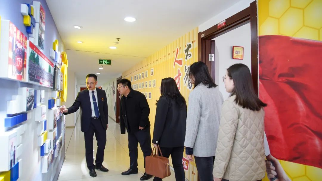 昌舉岡帶領大家參觀了黨建長廊,詳細介紹了大智黨委組織架構、企業文化等相關情況,以及“智惠黨建一三九”黨建工作模式,黨建引領下的“一帶一促”群團建設理念和“智惠+”群團建設模式。大家對大智的黨建工作給予了高度評價。