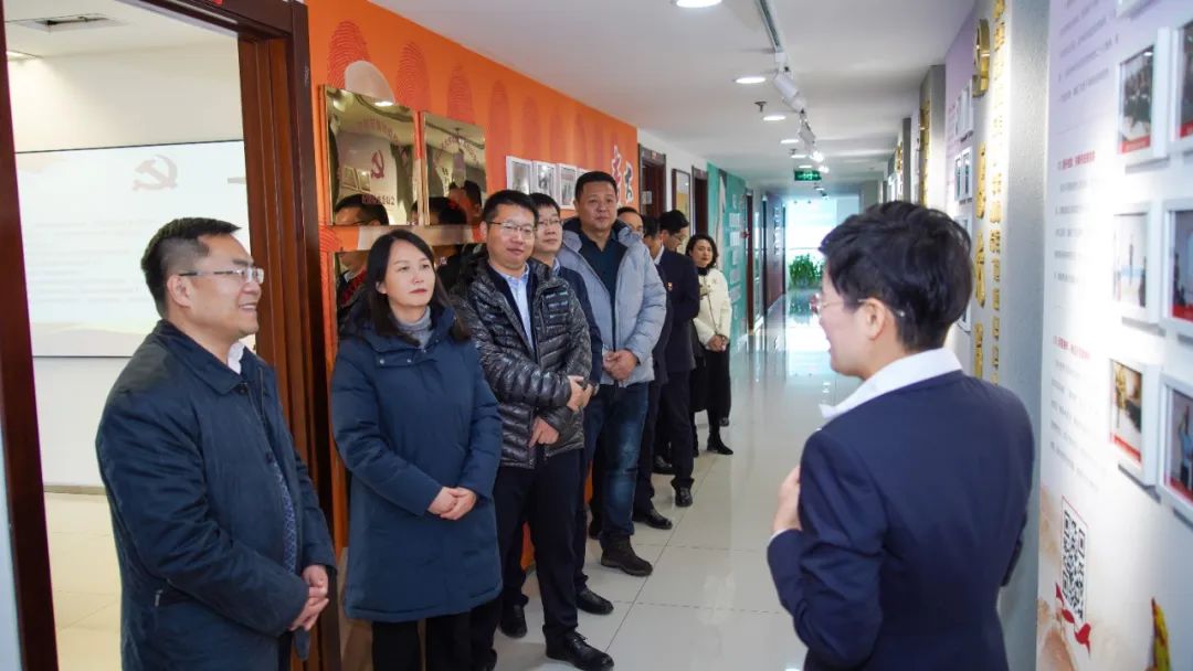 王現芹帶領大家參觀了黨建長廊,詳細介紹了大智組織架構、企業文化等相關情況,以及“智惠黨建一三九”黨建工作模式,黨建引領下的“一帶一促”群團建設理念和“智惠+”群團建設模式。大家對大智的黨建工作給予了高度評價。