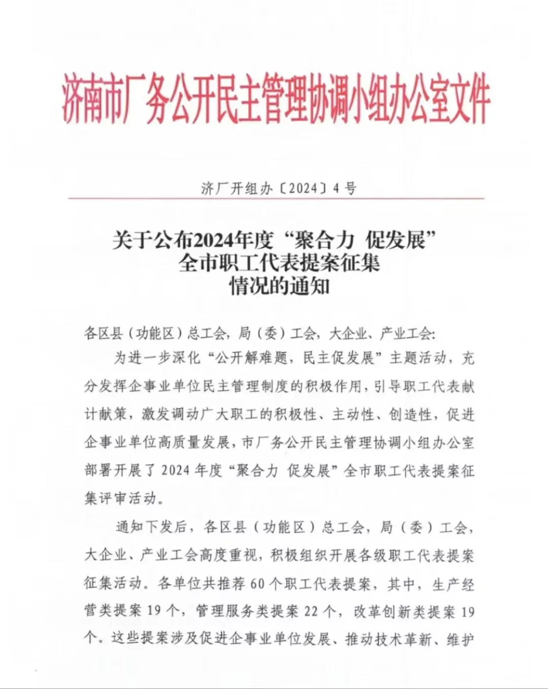 近日,濟南市總工會下發《關于公布2024年度“聚合力 促發展”全市職工代表提案征集情況的通知》,大智控股集團工會《關于對師范畢業生開展素養提升培訓的提案》榮獲一等獎。