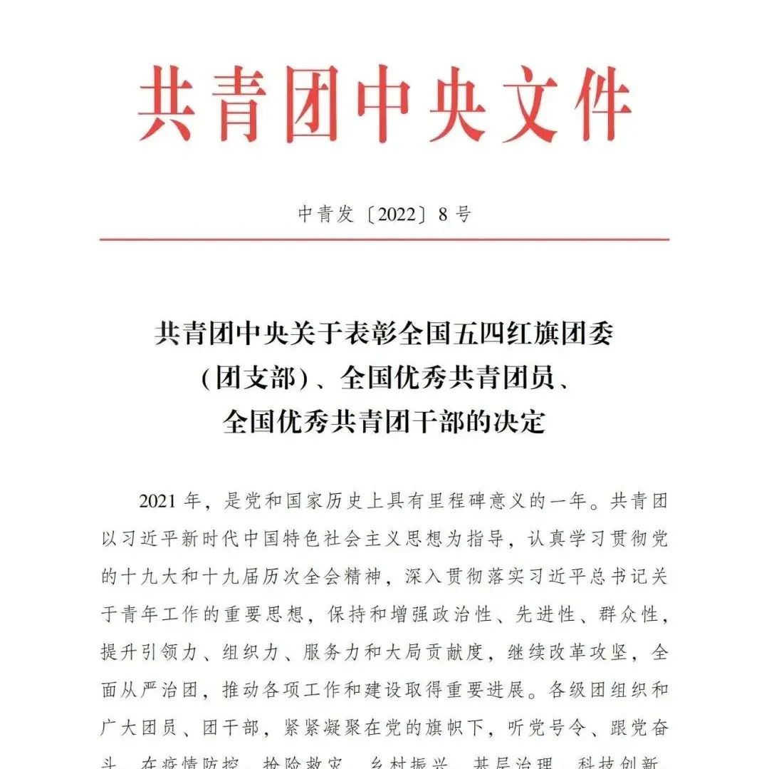 2022年是中國共青團(tuán)成立100周年。近日,共青團(tuán)中央發(fā)布《共青團(tuán)中央關(guān)于表彰全國五四紅旗團(tuán)委(團(tuán)支部)、全國優(yōu)秀共青團(tuán)員、全國優(yōu)秀共青團(tuán)干...