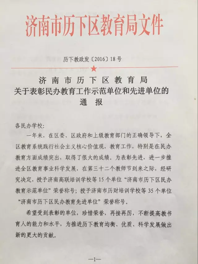 日前,濟(jì)南市歷下區(qū)教育局下發(fā)《濟(jì)南市歷下區(qū)教育局關(guān)于表彰民辦教育工作示范單位和先進(jìn)單位的通報(bào)》,大智憑借優(yōu)質(zhì)的教學(xué)服務(wù)、規(guī)范的教學(xué)管理以及優(yōu)異的教學(xué)成績(jī)榮獲“濟(jì)南市歷下區(qū)民辦教育示范單位”榮譽(yù)稱號(hào)。