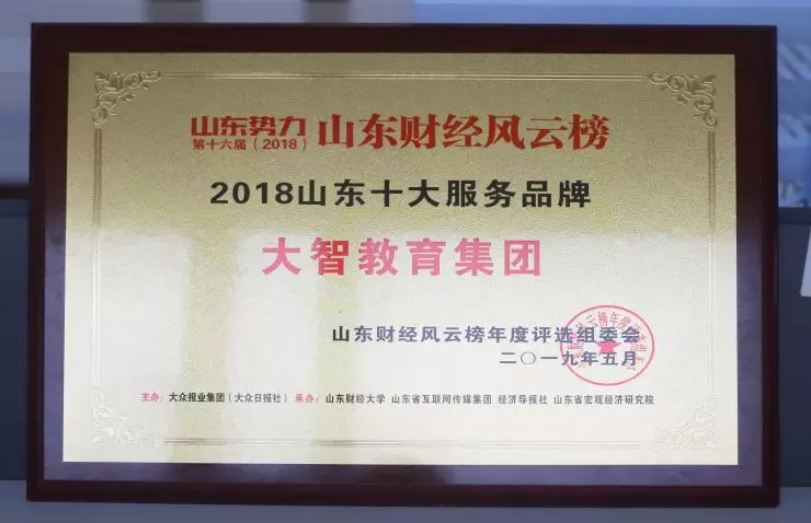 本次獎項評選歷經公眾投票和專家評審多個環節,大智控股集團憑借良好的教學質量和口碑在激烈競爭中脫穎而出。會上,大智被評為“山東十大服務品牌”。