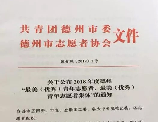 近日,共青團德州市委、德州市志愿者協會聯合發布《關于公布2018年度德州“最美(優秀)青年志愿者、最美(優秀)青年志愿者集體”的通知》,大智...
