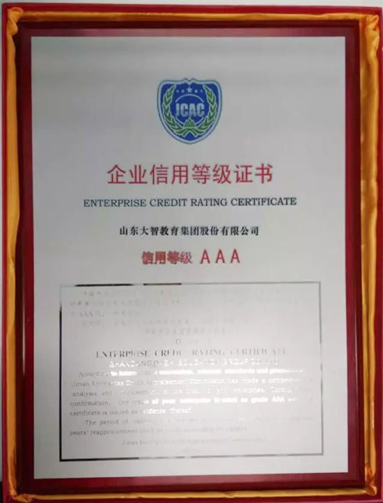 近日,經(jīng)濟(jì)南市企業(yè)信譽(yù)評價工作委員會嚴(yán)格審核與評估,大智教育集團(tuán)被評定為企業(yè)信用等級AAA級,按照企業(yè)信用等級標(biāo)準(zhǔn),AAA級為最高信用等級。...