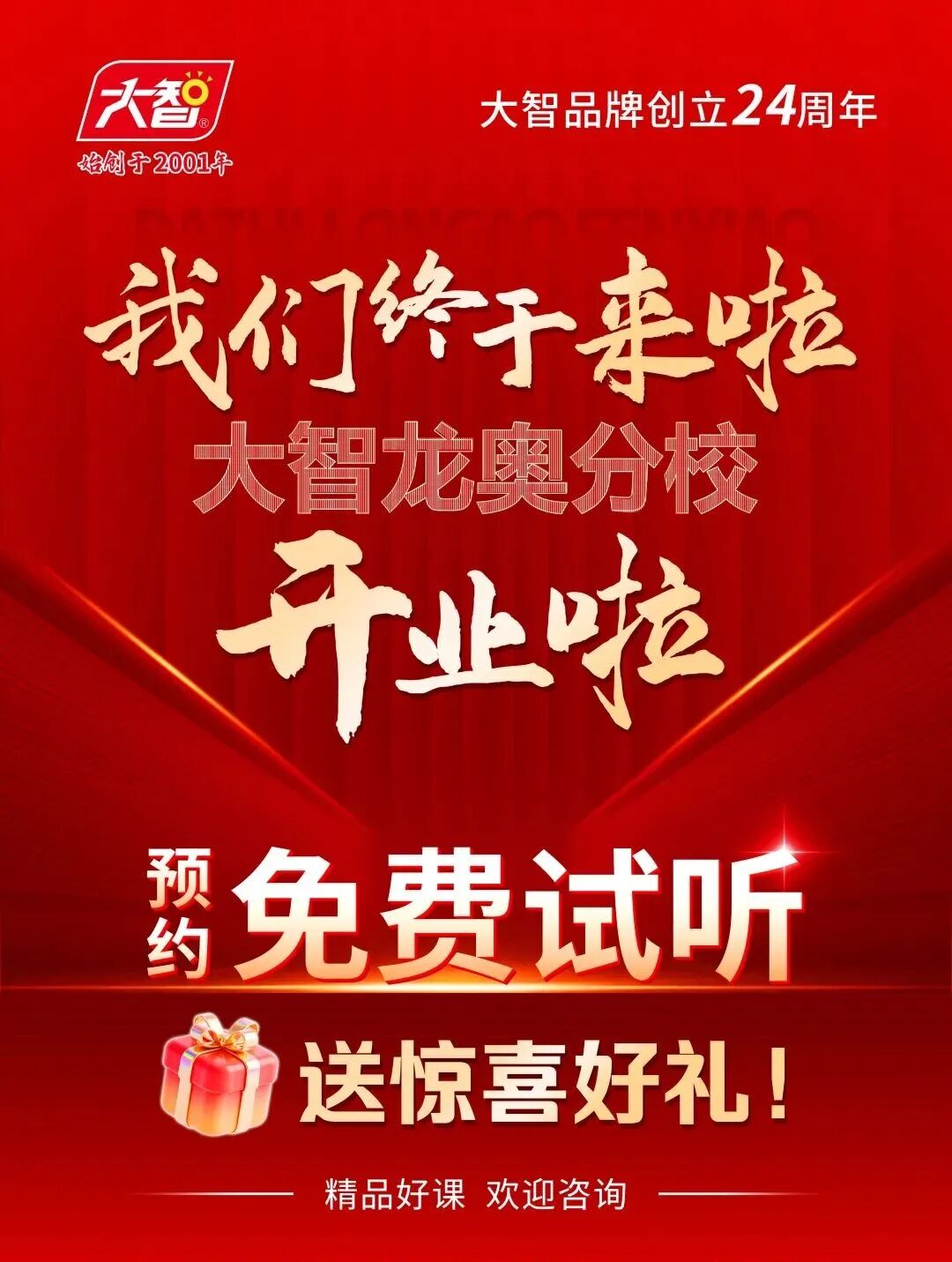 尊敬的家長朋友: 您好! 衷心感謝您長期以來對大智的支持與信任!為持續優化教學環境、提升服務質量,大智開元分校已正式遷至濟南市龍奧西路1...