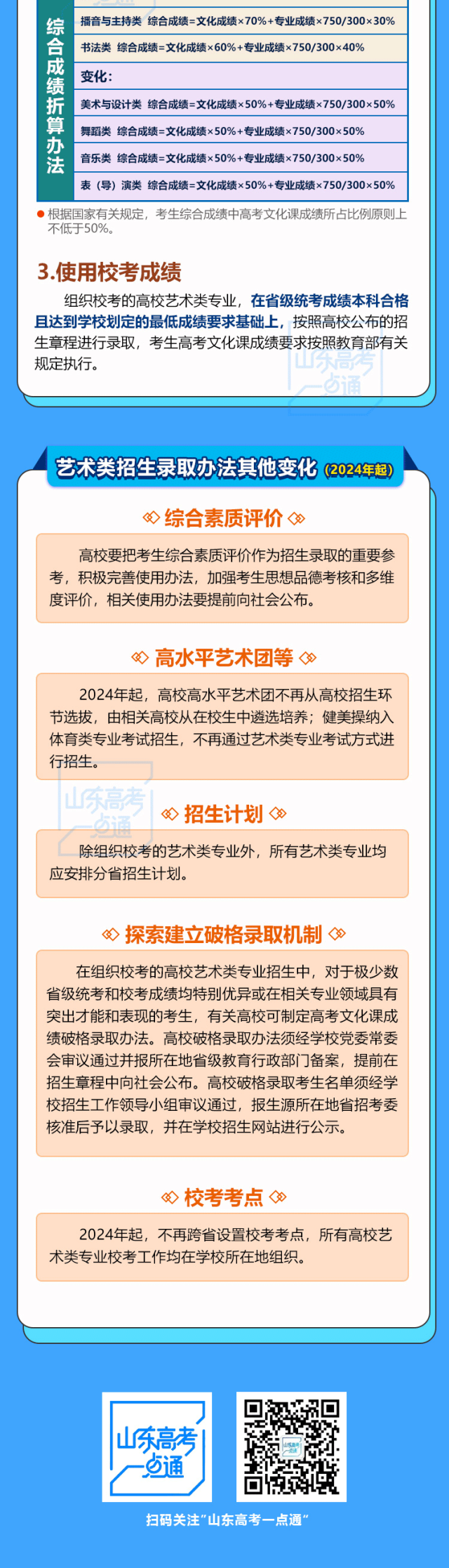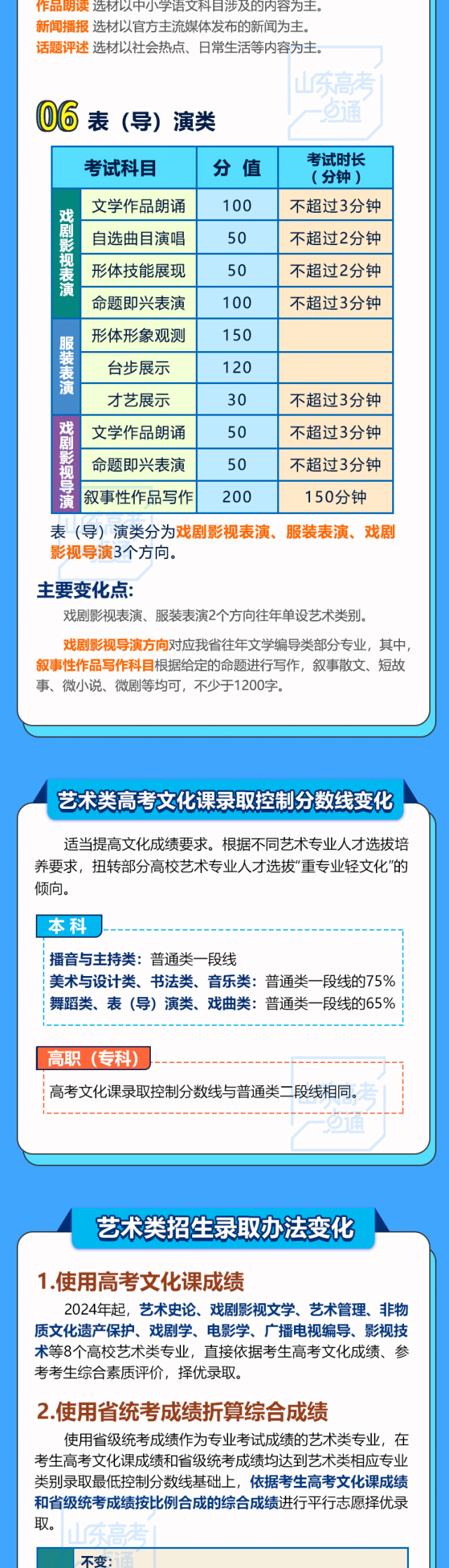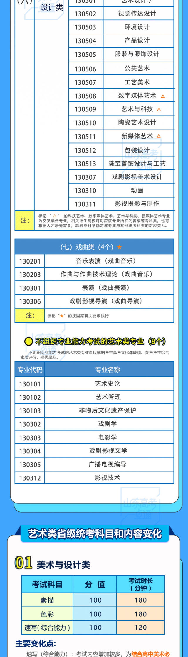 關(guān)于公布山東藝術(shù)學(xué)院藝術(shù)類校考專業(yè)的公告根據(jù)《教育部關(guān)于進(jìn)一步加強(qiáng)和改進(jìn)普通高等學(xué)校藝術(shù)類專業(yè)考試招生工作的指導(dǎo)意見》(教學(xué)〔2021〕3號(hào))等文件精神,經(jīng)上級(jí)批復(fù), 2024年,我校作曲與作曲技術(shù)理論(專業(yè)代碼:130203)、雕塑(專業(yè)代碼:130403)2個(gè)專業(yè),可在藝術(shù)類專業(yè)省級(jí)統(tǒng)考合格基礎(chǔ)上組織校考。有關(guān)報(bào)考詳情請(qǐng)關(guān)注我校本科招生信息網(wǎng)站(https://zsbgs.sdca.edu.cn/)。此前,山東省教育招生考試院發(fā)布了《關(guān)于印發(fā)山東省進(jìn)一步加強(qiáng)和改進(jìn)普通高等學(xué)校藝術(shù)類專業(yè)考試招生工作實(shí)施方案的通知》和《山東省2024年普通高考報(bào)考提醒》,公布了2024年特殊類型招生政策變化和藝術(shù)類招生政策變化。2024年起,全國(guó)范圍內(nèi)將藝術(shù)類專業(yè)統(tǒng)一分為美術(shù)與設(shè)計(jì)類、書法類、音樂類、舞蹈類、播音與主持類、表(導(dǎo)) 演類等7個(gè)類別,其中美術(shù)與設(shè)計(jì)類、書法類、音樂類、舞蹈類、播音與主持類、表 (導(dǎo)) 演類6個(gè)類別實(shí)行省級(jí)統(tǒng)考,戲曲類按教育部最新要求執(zhí)行。