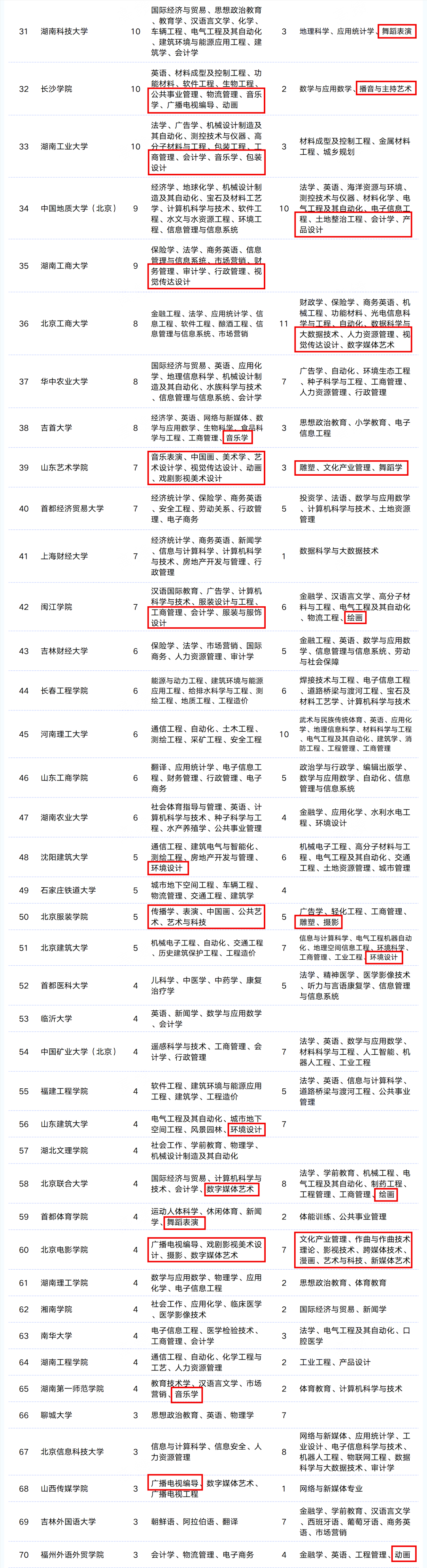 產(chǎn)品設(shè)計、服裝與服飾設(shè)計、數(shù)字媒體藝術(shù)、工業(yè)設(shè)計、高分子材料與工程、服裝設(shè)計與工程、動畫、視覺傳達(dá)設(shè)計、環(huán)境設(shè)計、傳播學(xué)、表演、中國畫、公共藝術(shù)、藝術(shù)與科技