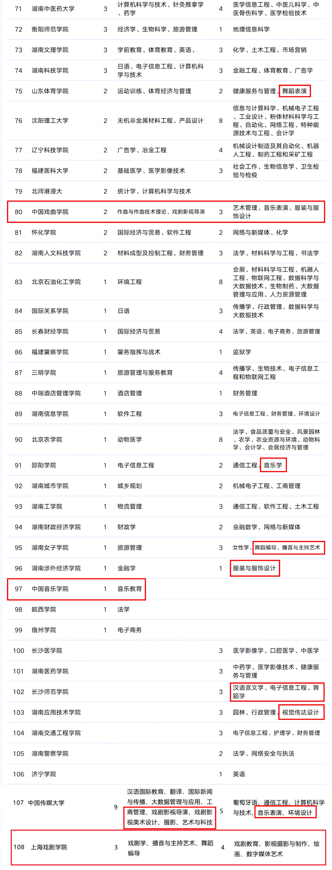 舞蹈編導(dǎo)、廣播電視編導(dǎo)、動畫、環(huán)境設(shè)計、繪畫、音樂表演、舞蹈學(xué)