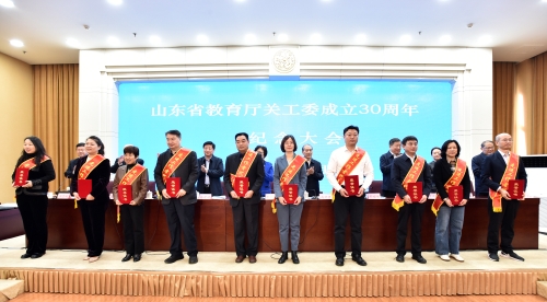 11月8日,山東省教育廳關工委成立30周年紀念大會在濟南舉行。大會在響亮的國歌聲中開幕。教育部關工委主任李衛紅;省委原副書記,省人大常委會原黨組書記、常務副主任,省關工委主任高新亭;省人大常委會原秘書長,省關工委副主任兼秘書長孫建功;教育部關工委秘書長郝雅梅;省委教育工委副書記,省教育廳黨組副書記、副廳長邢順峰;省教育廳關工委主任黃琦等出席會議。省委教育工委委員、省教育廳黨組成員、副廳長張志剛主持會議。