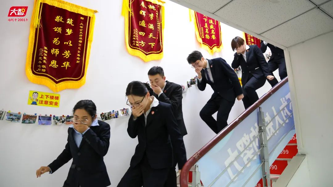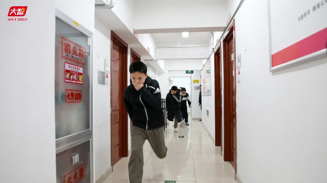 隨后,進(jìn)行安全逃生專項演練。全體師生聞令而動,依循預(yù)定消防疏散方案,有條不紊地展開撤離行動。大家手捂口鼻、彎腰低身、迅速、有序地進(jìn)行了撤離。全程秩序井然,無慌亂擁擠,嚴(yán)格遵循消防疏散規(guī)范,保障了撤離的安全高效。