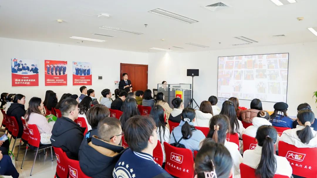 同學們參觀總部,了解大智黨建、組織文化建設及企業發展史等相關情況。