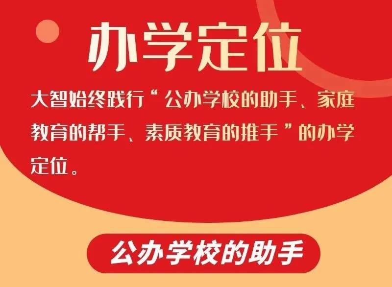正是得益于精準的辦學定位,大智才有了明確的發展方向,前進道路上的指路明燈,能夠精準把握政策脈搏,牢牢抓準發展主流方向,響應國家號召,順利轉型升級。大智將繼續秉持“公辦學校的助手、家庭教育的幫手、素質教育的推手”的辦學定位,不斷加強教育探索,助推教育事業發展,為學生和家長提供更高質量的教育教學服務。