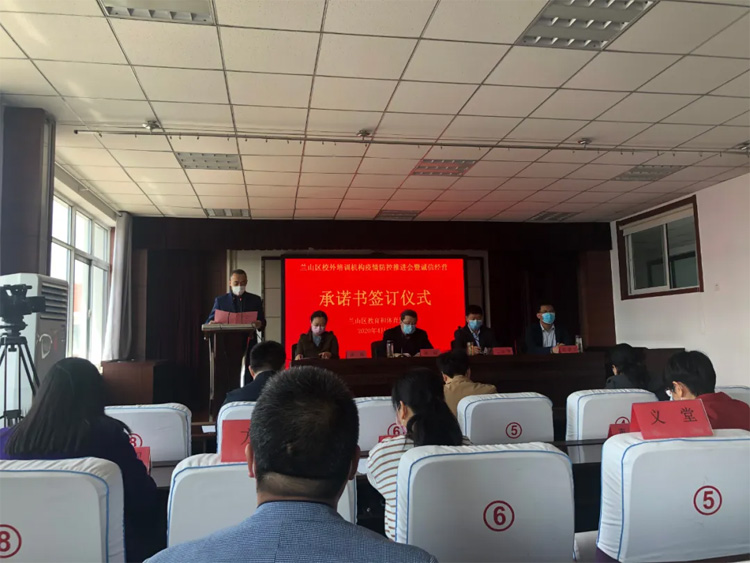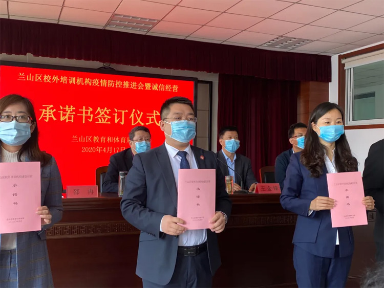 近日,大智臨沂區域參加了臨沂市蘭山區校外培訓機構疫情防控推進會暨誠信經營承諾書簽訂儀式。會上,大智臨沂區域作為校外機構代表上臺遞交承諾書。