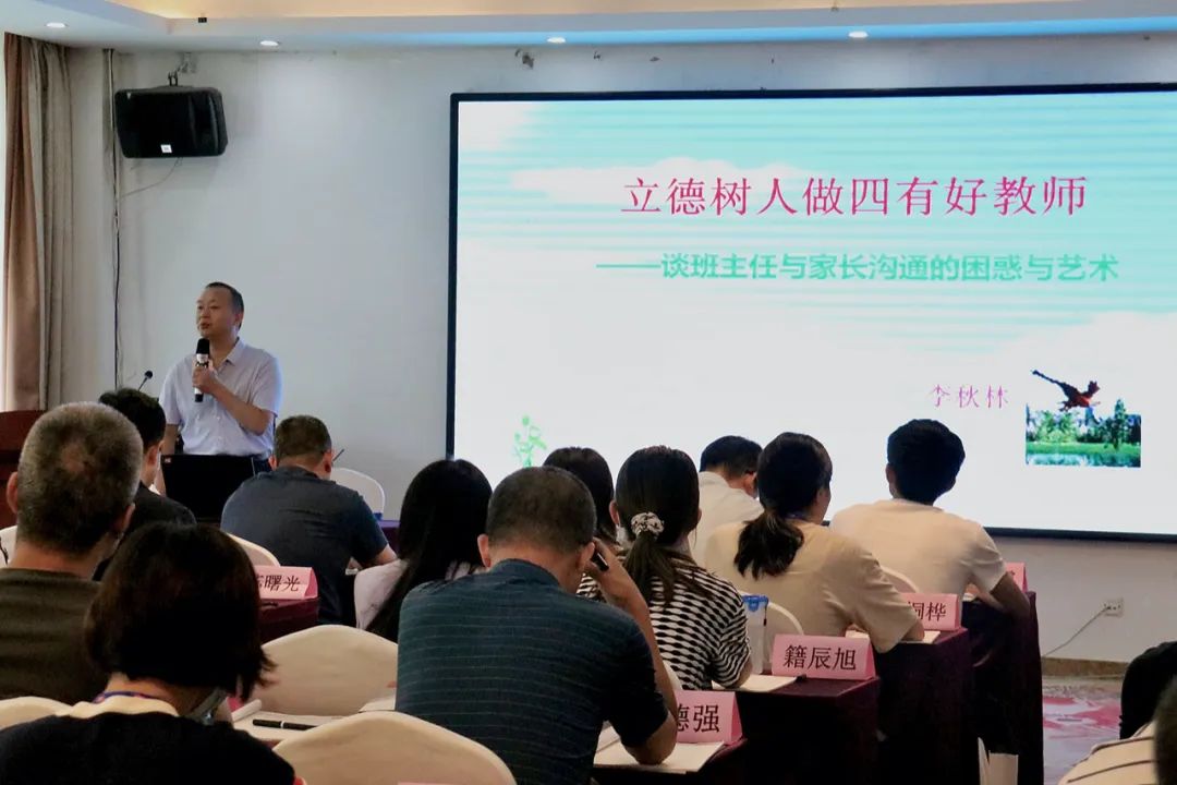 開班儀式結束后,正高級教師、山東師范大學碩士導師,濟南市優秀班主任李秋林老師帶來了《立德樹人做“四有”好老師》的主題分享。李老師的課堂深入淺出,貼近實際,案例詳實,富有啟發,贏得學員們的一致好評。