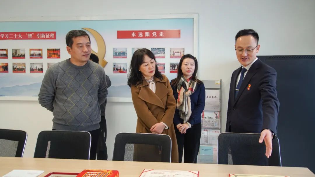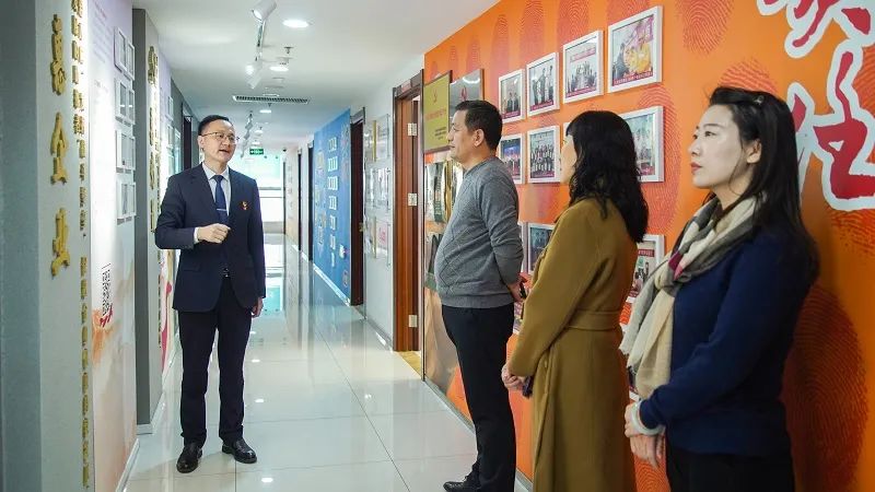 昌舉岡帶領大家參觀了黨建長廊,詳細介紹了大智組織架構、企業文化等相關情況,以及“智惠黨建一三九”黨建工作模式,黨建引領下的“一帶一促”群團建設理念和“智惠+”群團建設模式。大家對大智的黨建工作給予了高度評價。