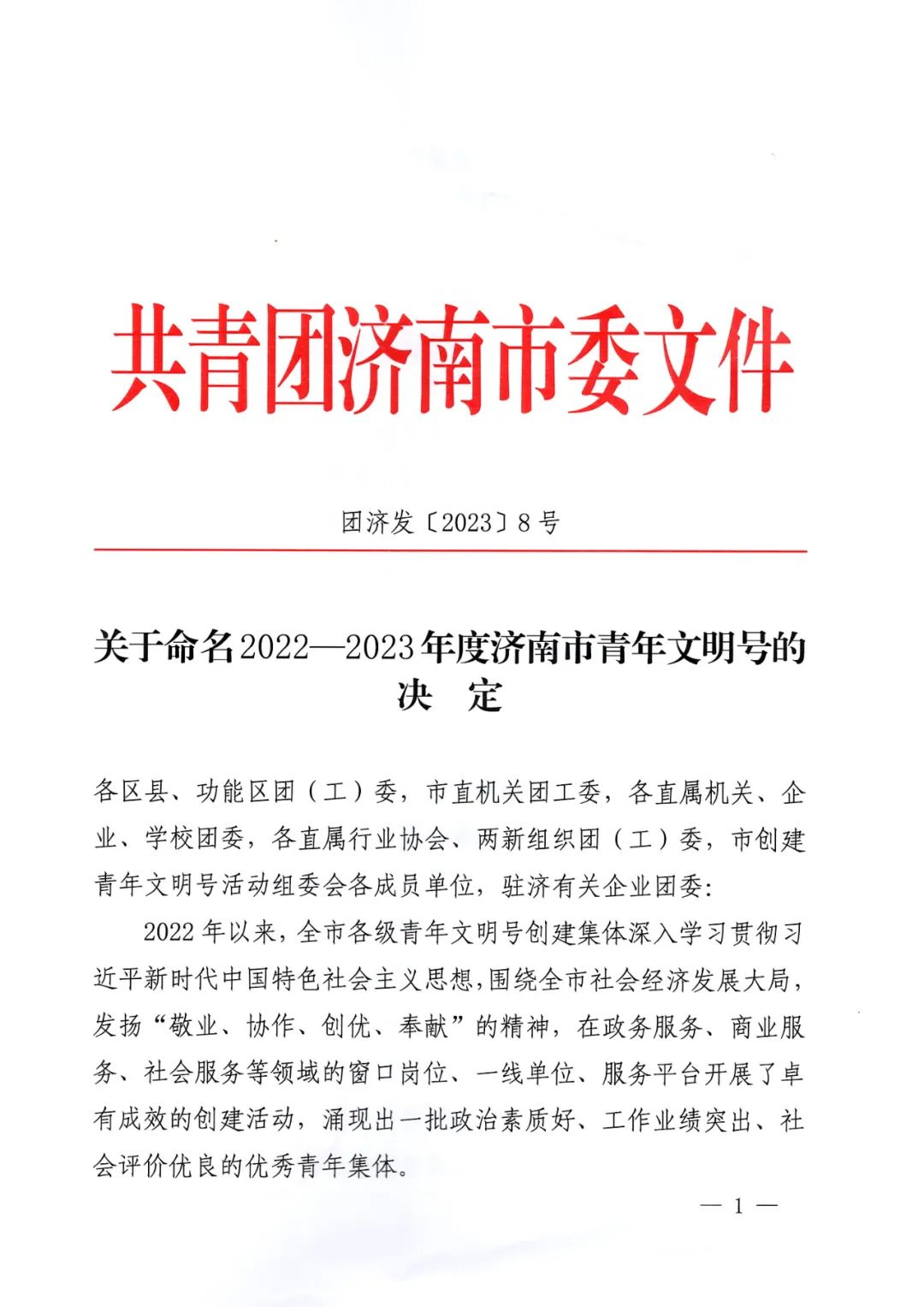 榮獲“2022-2023年度濟南市青年文明號”是對大智的肯定與激勵。下一步,大智團委將以此為新的起點,持續爭先創優,創新突破,為大智事業發展貢獻力量。