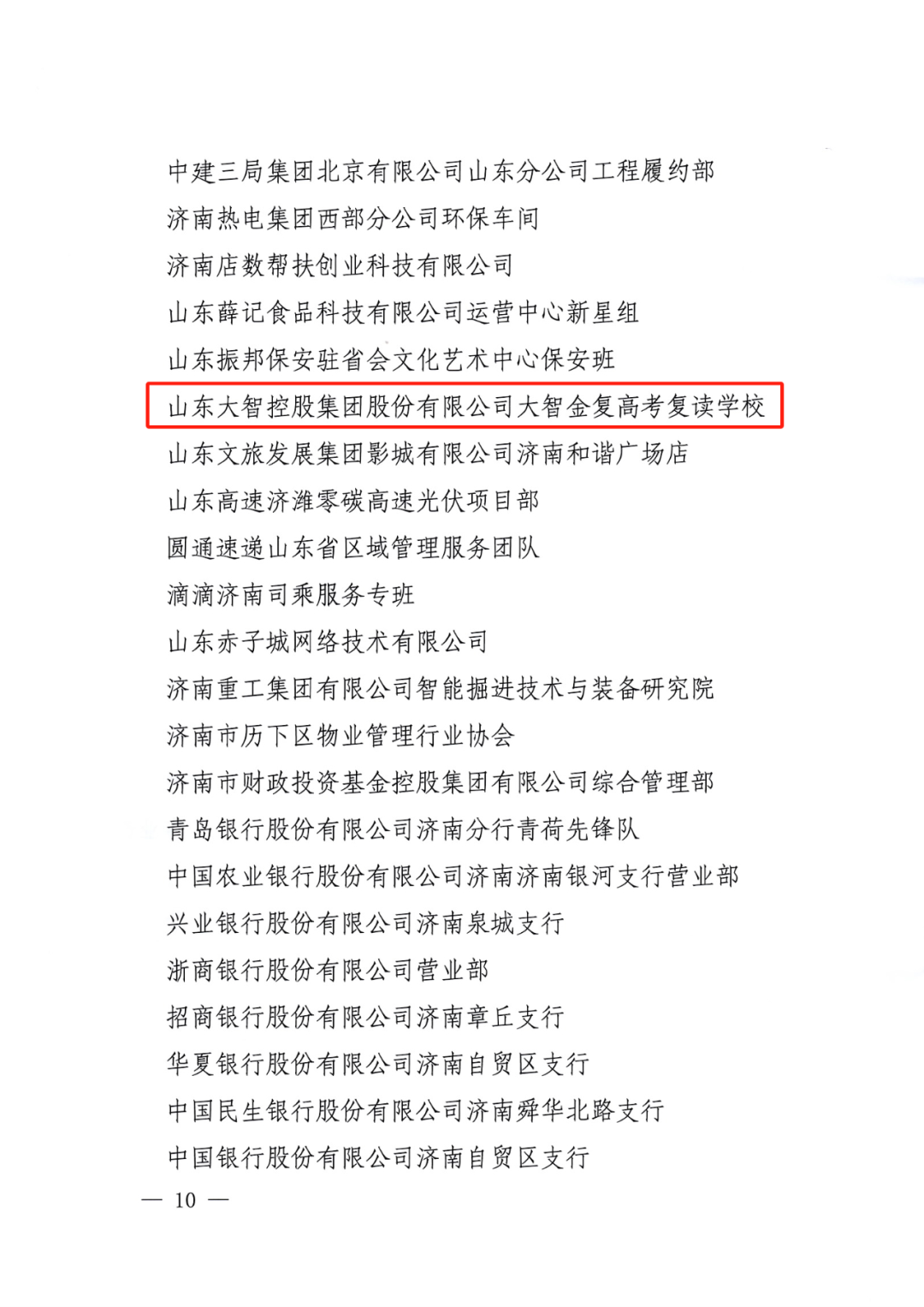 近日,共青團濟南市委下發《團濟發〔 2023〕8號關于命名2022-2023年度濟南市青年文明號的決定》,大智金復高考復讀學校榜上有名,榮獲2022-2023年度濟南市青年文明號稱號。
