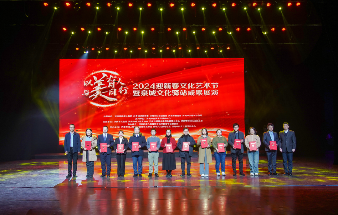 2月3日,由濟南市文化館、濟南市成人教育協會、濟南日報報業集團教育事業中心、濟南市教培行業團工委主辦,濟南市成人教育協會藝術教育專業委員會承辦的2024迎新春文化藝術節暨泉城文化驛站成果展演隆重舉行 。
