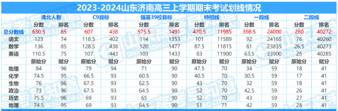 2024年山東各地市高三期末考試陸續進行,現整理匯總了淄博、濟南、濰坊、德州、濟寧等5個市2024年高三期末考試的劃線情況供大家參考。